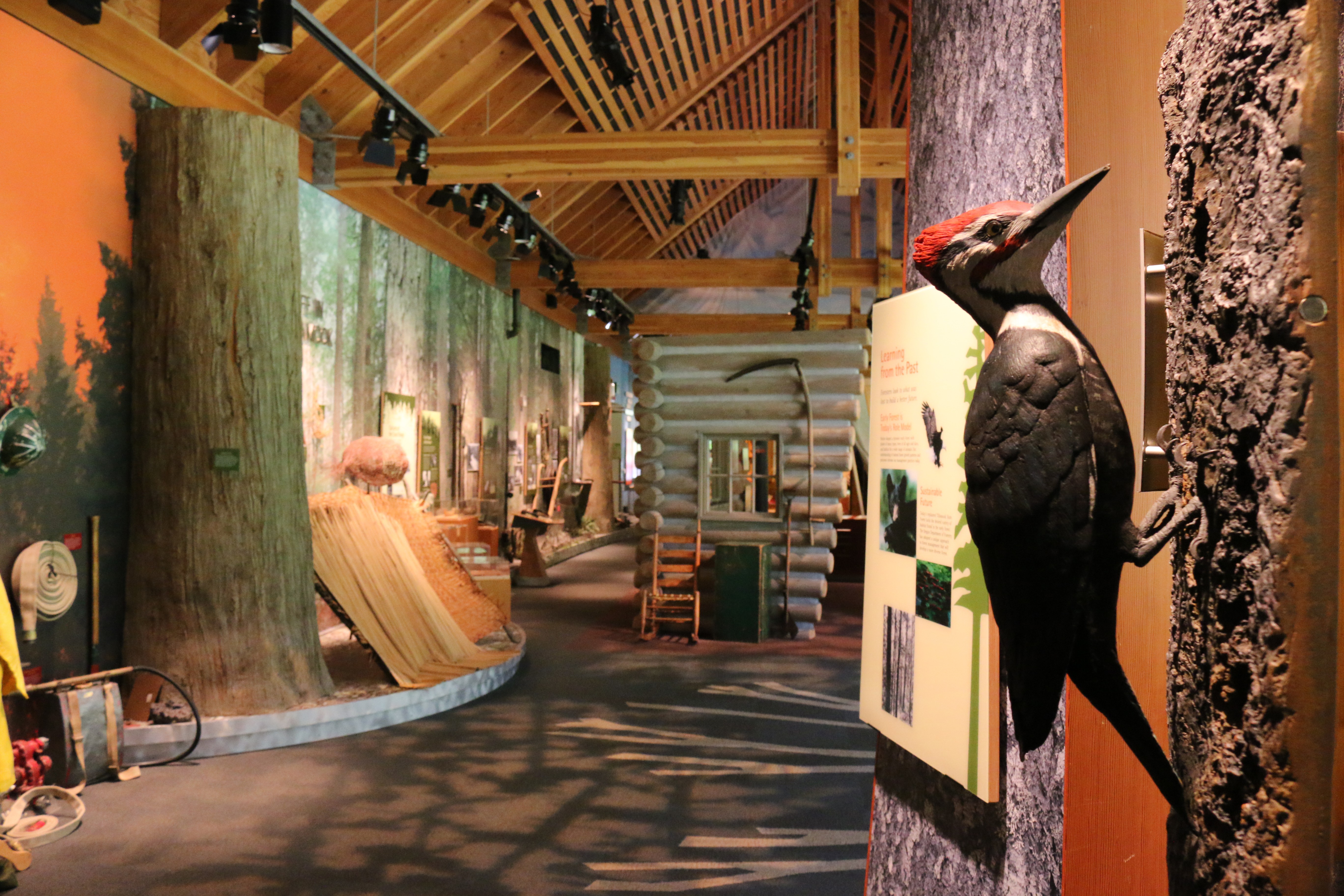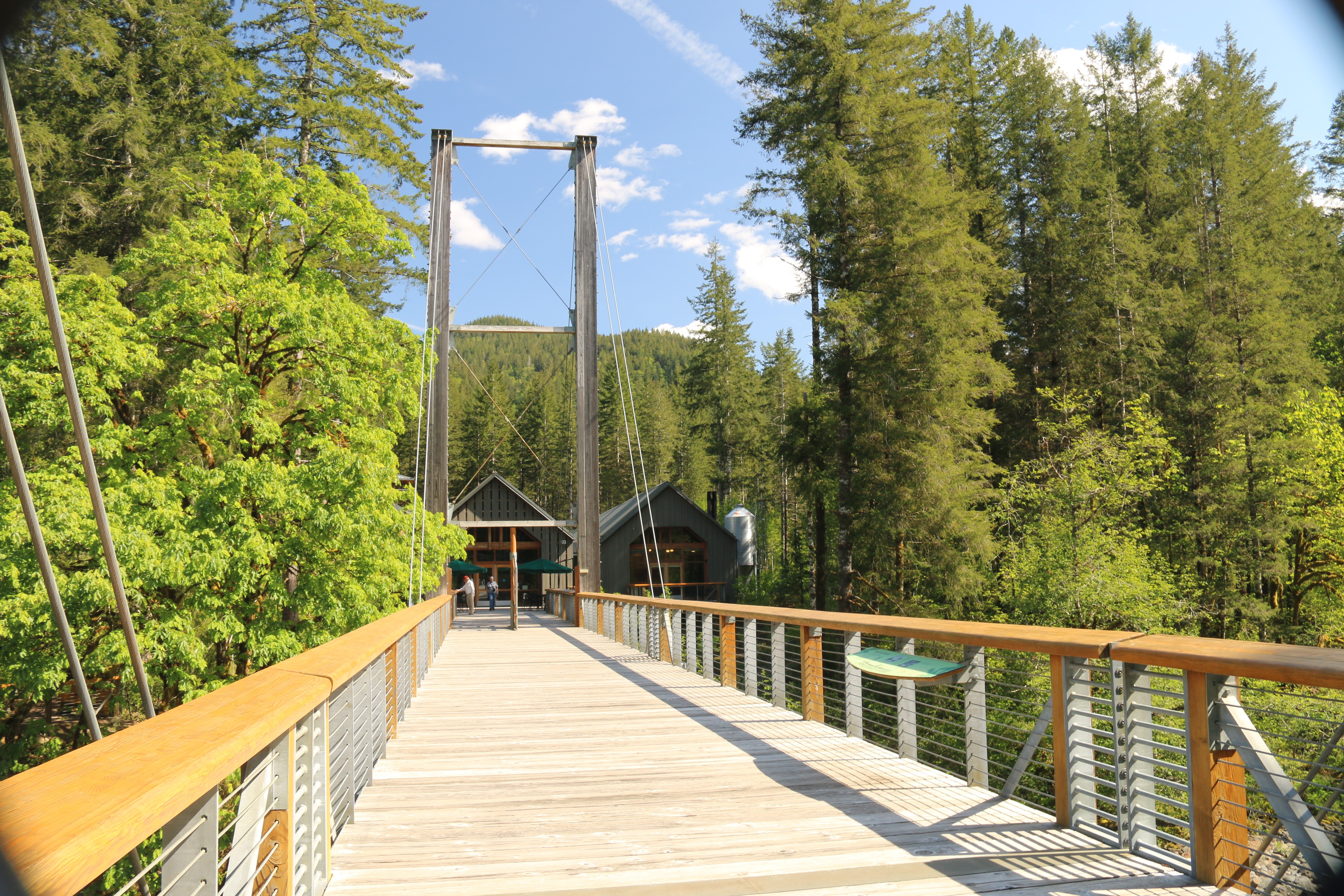 There is also plenty to explore outside the center including: A 40-foot-tall fire lookout tower that offers a unique view of the area and the surrounding forest canopy. A 250-foot-long suspension bridge over the Wilson River and interpretative trails that lead from the building, through the woods and along the river, providing insight into the past, present, and future of the forest. Plus, much more.