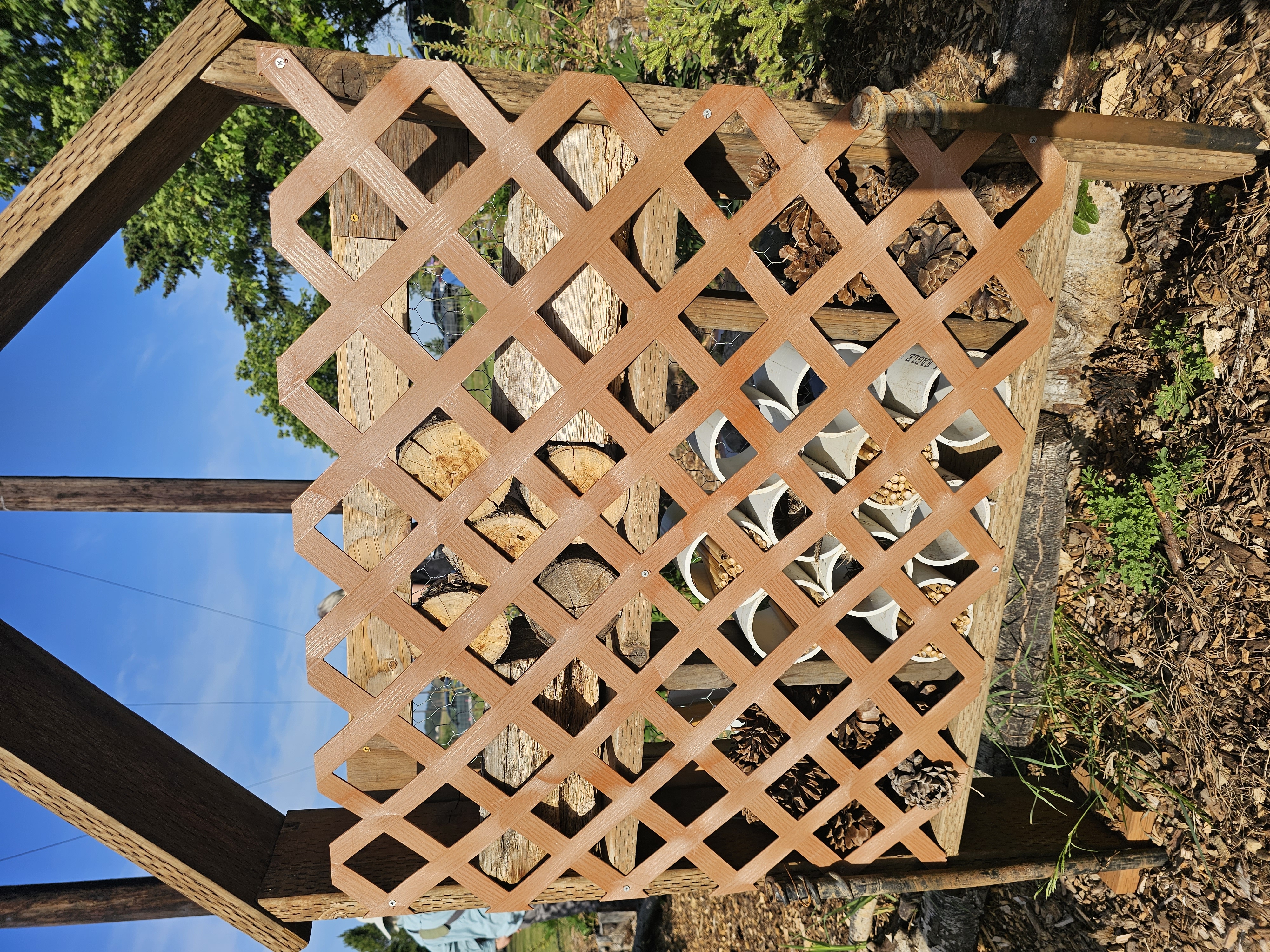 Insect “hotels”, such as this one at Chintimini Wildlife Center, provide abundant habitat for a number of species of pollinators and other bugs, and are easy to build. Photo credit: Sara Roberts