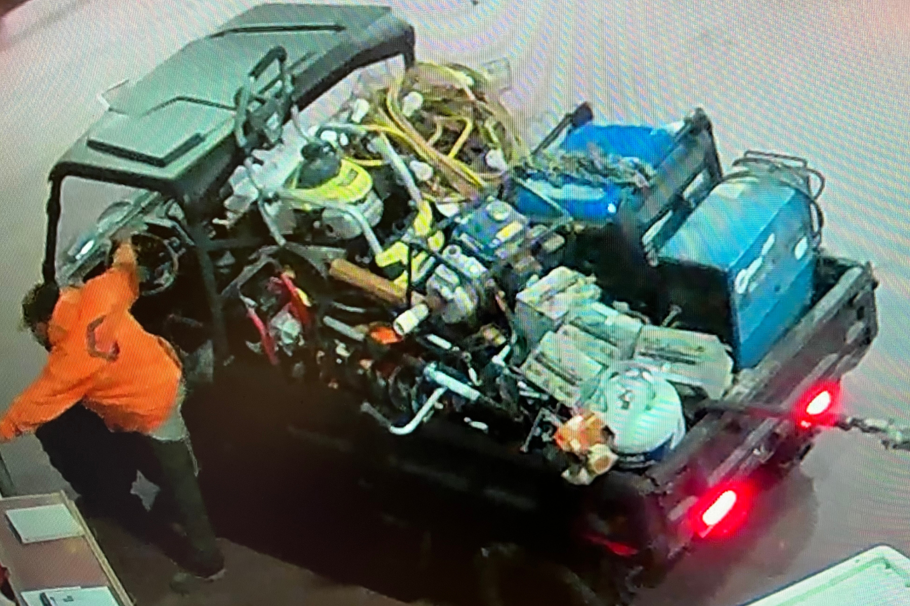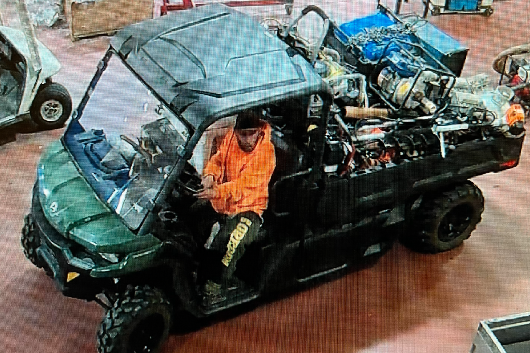 On Thursday, Dec. 18, 2025, at approximately 2:30 a.m., a male suspect entered the property and climbed through a building window. The suspect placed items on a side-by-side vehicle and then drove off the property with the stolen items.