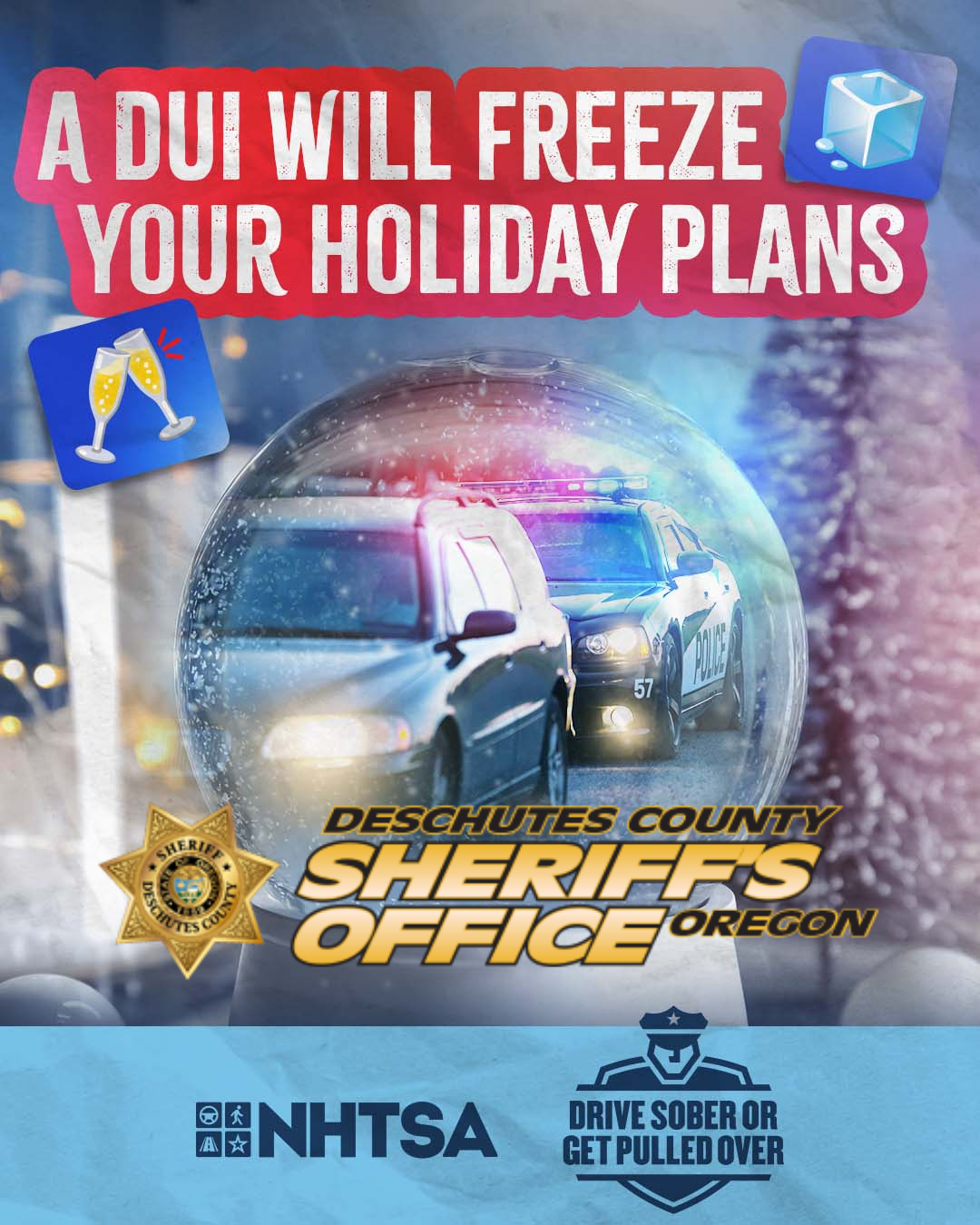 Bend, Ore. — As the holiday season arrives and winter weather settles in across Central Oregon, the Deschutes County Sheriff’s Office is joining the U.S. Department of Transportation’s National Highway Traffic Safety Administration (NHTSA) in the Drive Sober or Get Pulled Over campaign. Drivers will see increased patrols on local roads through New Year’s Eve as part of a nationwide effort to prevent impaired driving and keep communities safe.