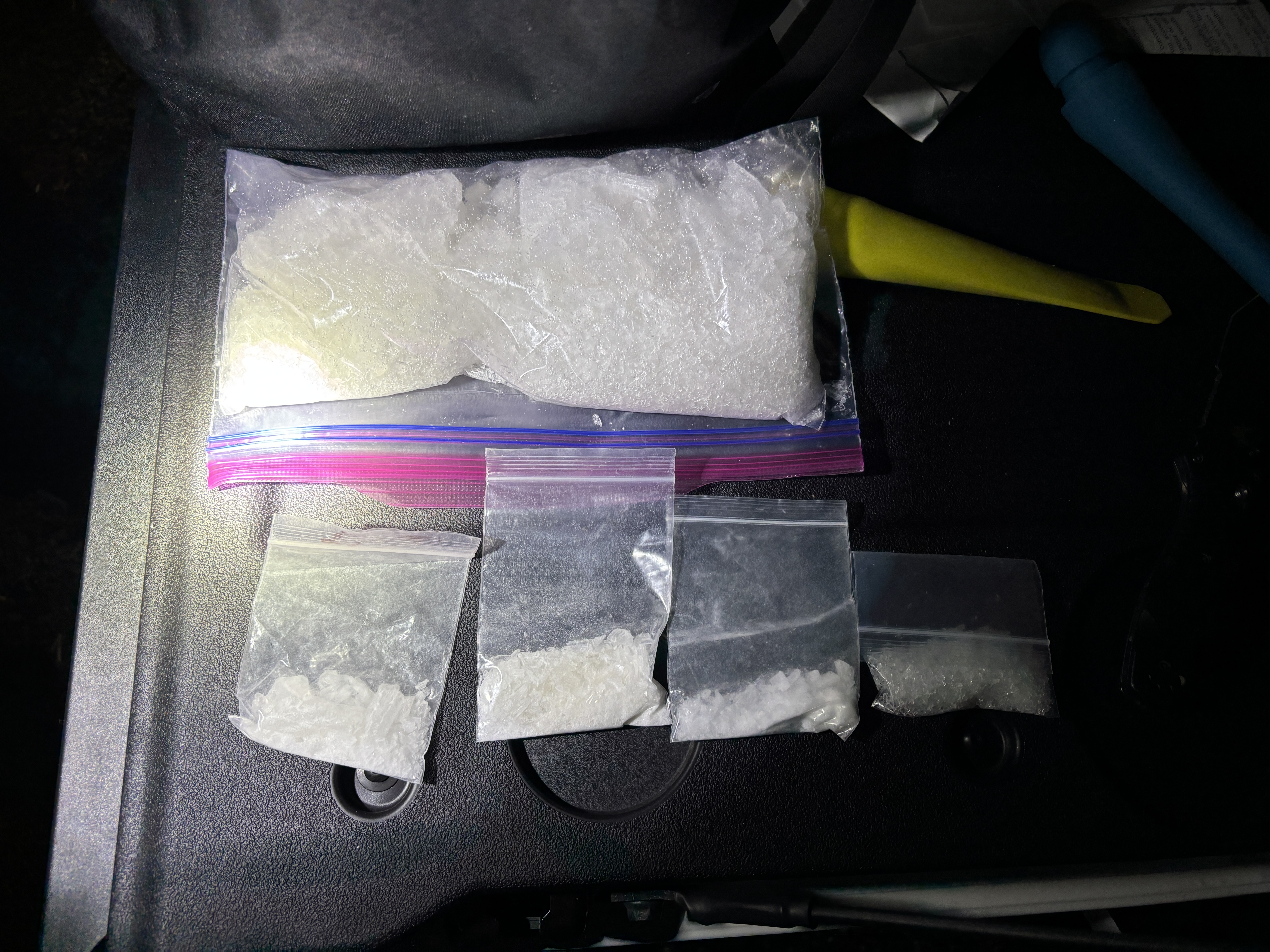 Redmond, OR - On Wednesday, February 4, 2026, at approximately 7:44 p.m., Redmond Police Department (RPD) Street Crimes Detectives concluded an ongoing investigation with the arrest of two individuals for a commercial quantity of methamphetamine along with evidence of drug sales. The arrest was made after a traffic stop near Redmond, Oregon, resulted in RPD Detection K9 Sadie alerting on the vehicle where over a pound of methamphetamine was located. Both suspects were lodged at the Deschutes County Adult Jail on charges of Unlawful Possession of Methamphetamine and Unlawful Delivery of Methamphetamine.