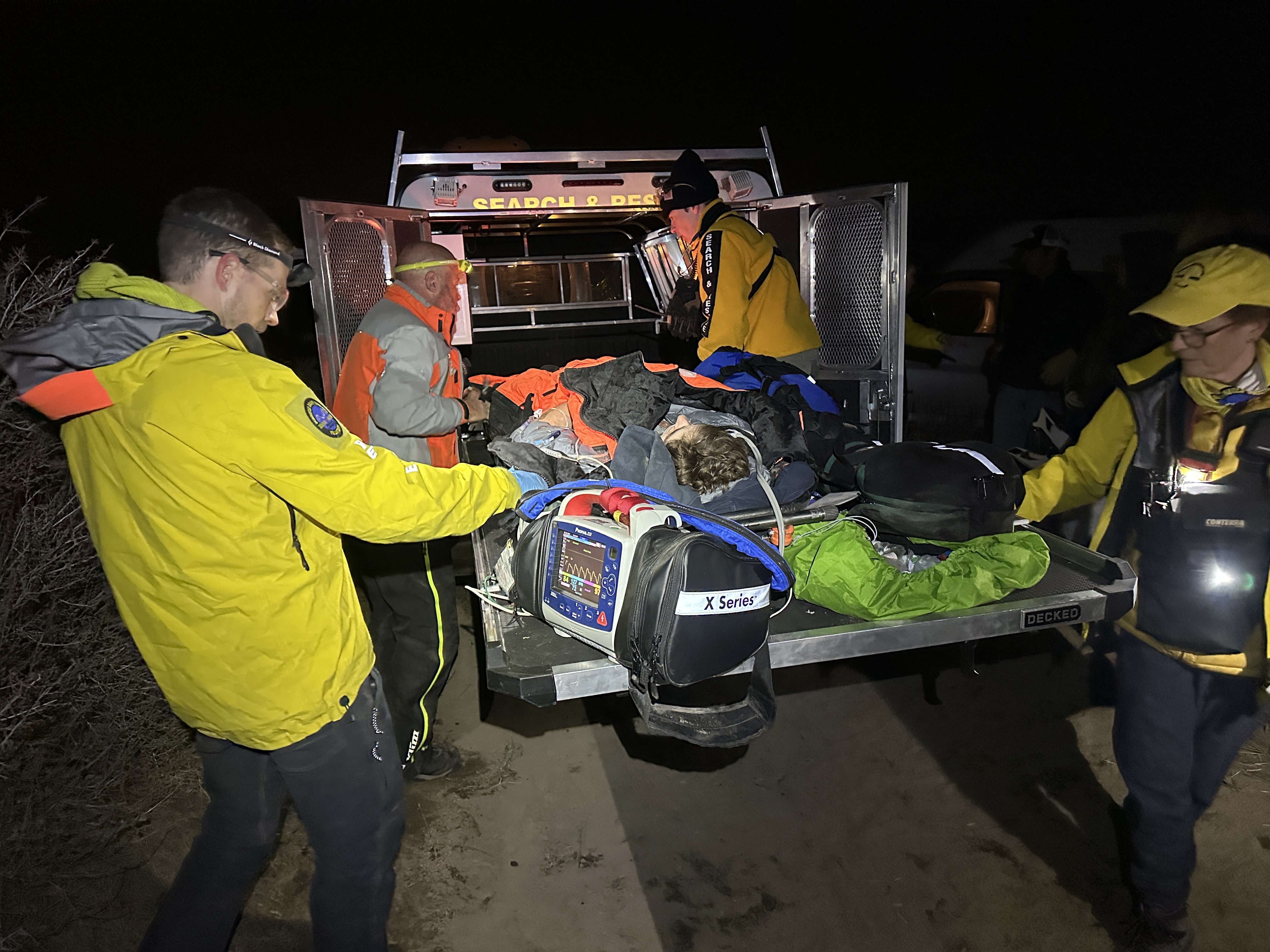 At 4:21 p.m., SAR was requested to assist Bend Fire & Rescue with an injured dirt bike rider from Bend who crashed on Ford Road, north of Pictograph Cave, and outside the China Hat closure boundary. Several SAR volunteers who had gathered earlier for the skier call were redirected and responded on ATVs. The male rider was located, transported to a paved area, and taken to the hospital by Bend Fire & Rescue.